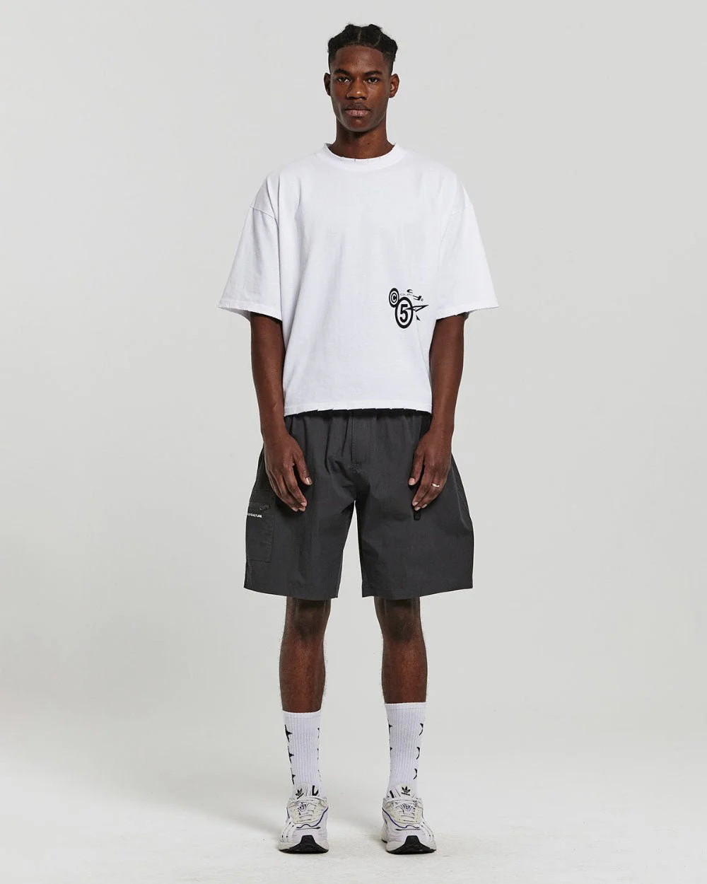 Straight loose fit shorts.