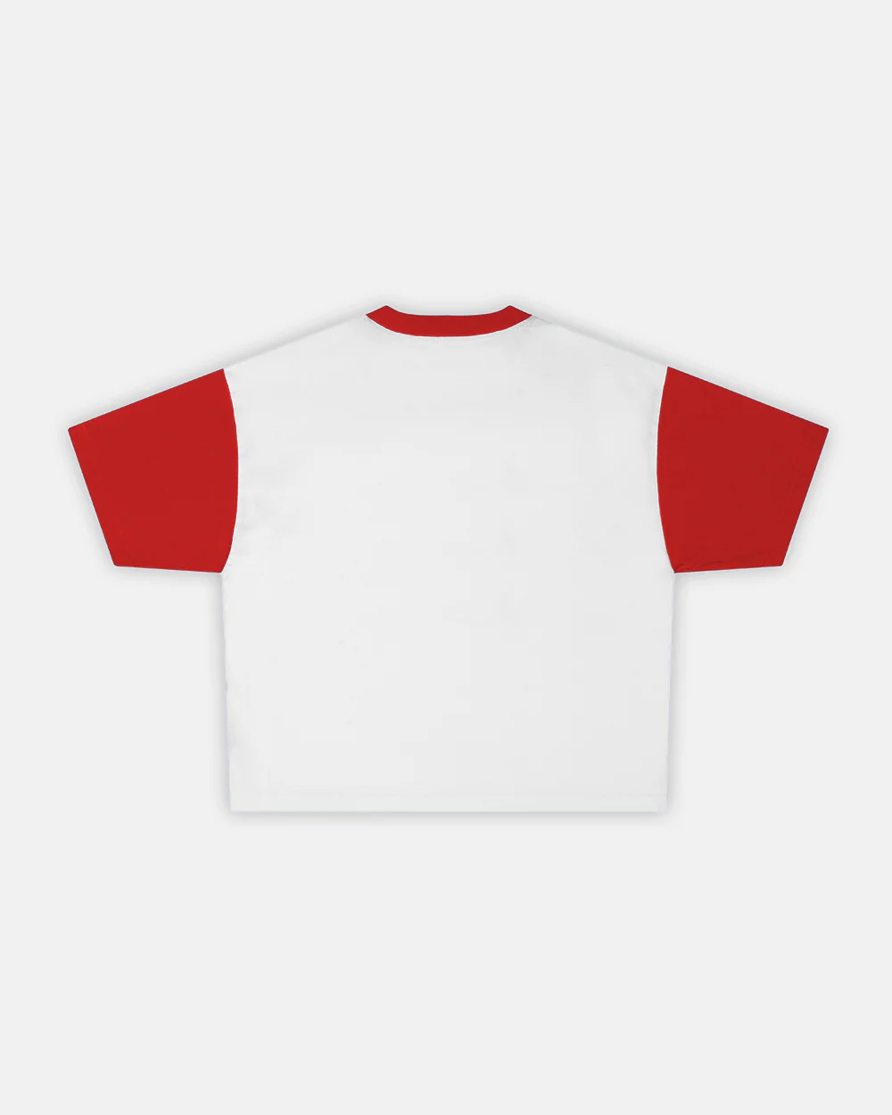 White body with red sleeves and collar.